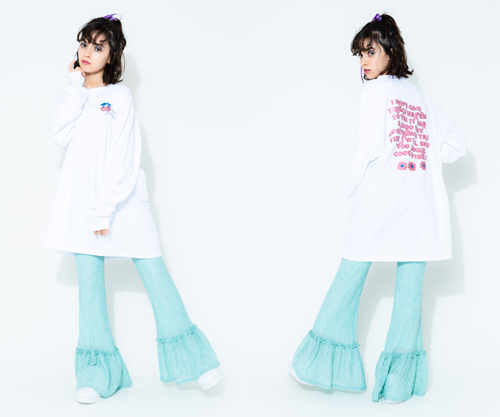 ラメプリントが施されたガーリーなロンT。