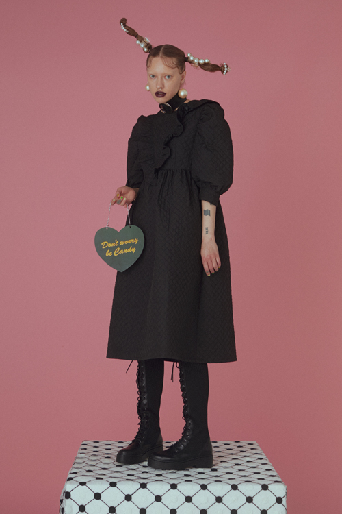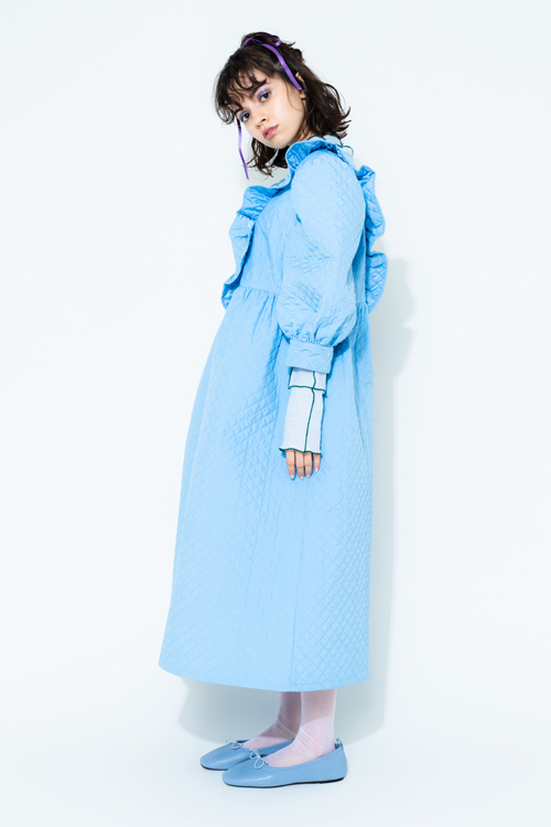 ボリューム感が可愛いダイヤ柄のキルティングワンピース。
