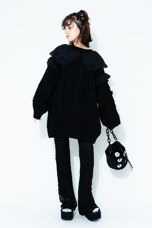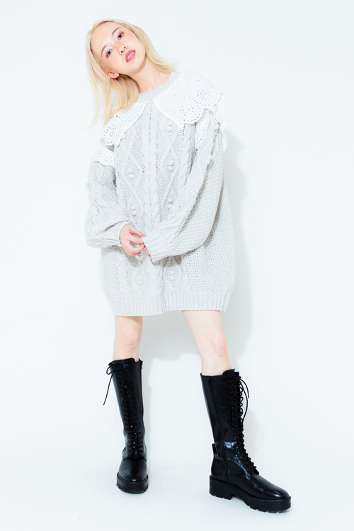 LACE COLLAR CABLE KNIT