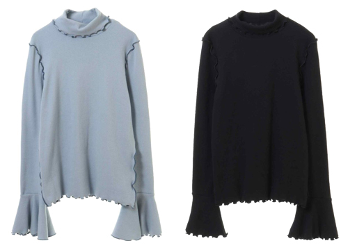 メロートリムデザインが印象的なフレア袖のトップス。