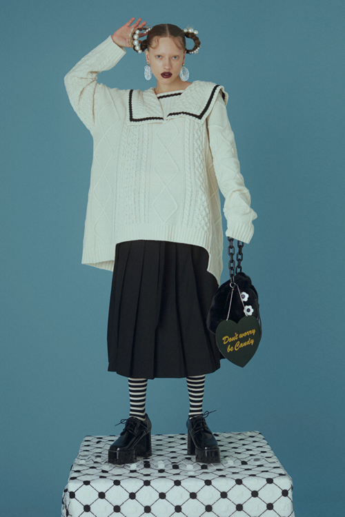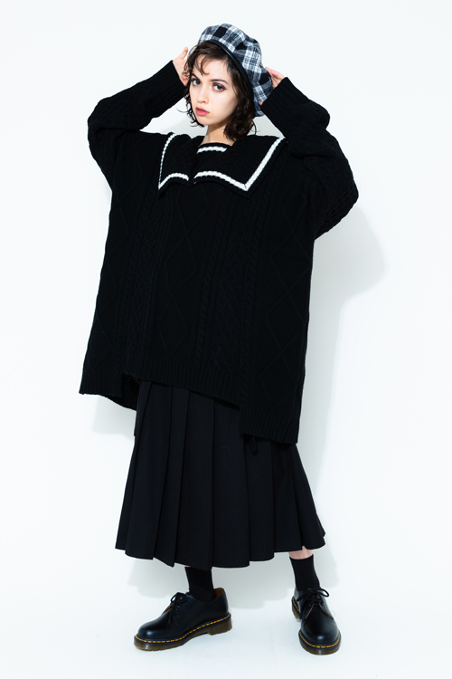 リメイク風セーラーカラーニットプルオーバー。