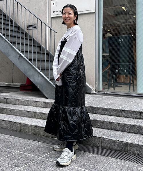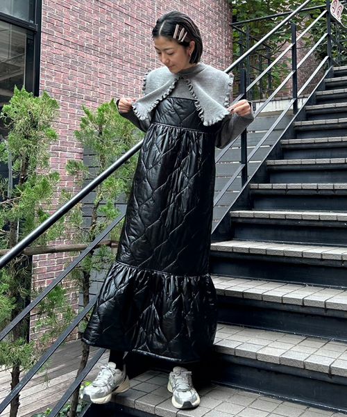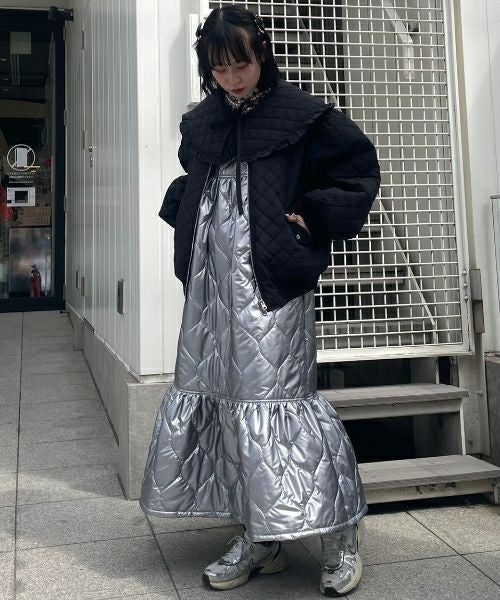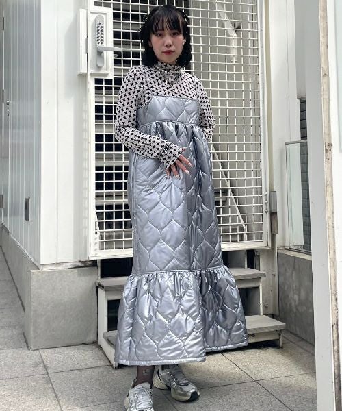 SHINY QUILTING ONE-PIECE