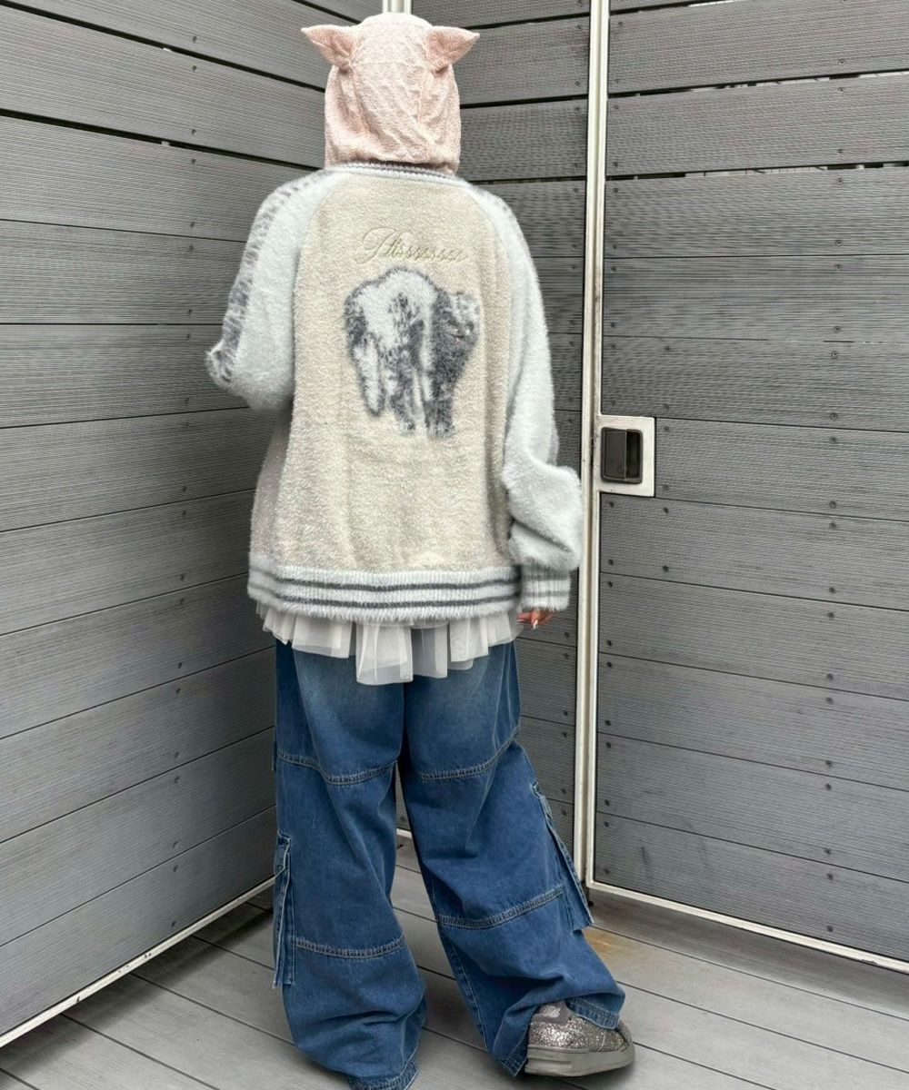 FLUFFY STAR LEOPARD KNIT CARDIGAN