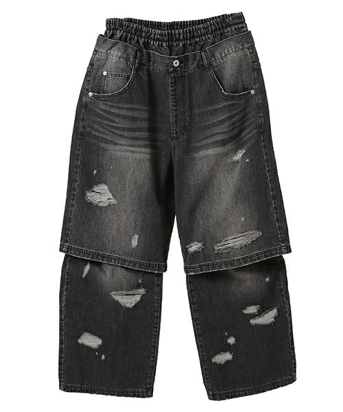 MULTI WAY DAMAGE LAYERED DENIM PANTS