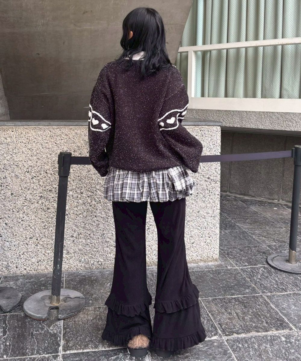 HEART OPEN FRILL DENIM PANTS