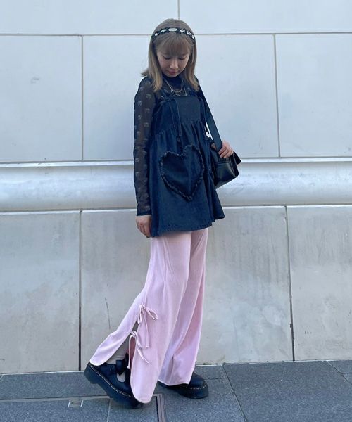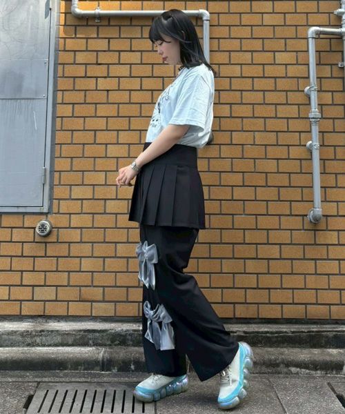 PRECIOUS RIBBON PLEATS WRAP SKIRT LAYERED PANTS