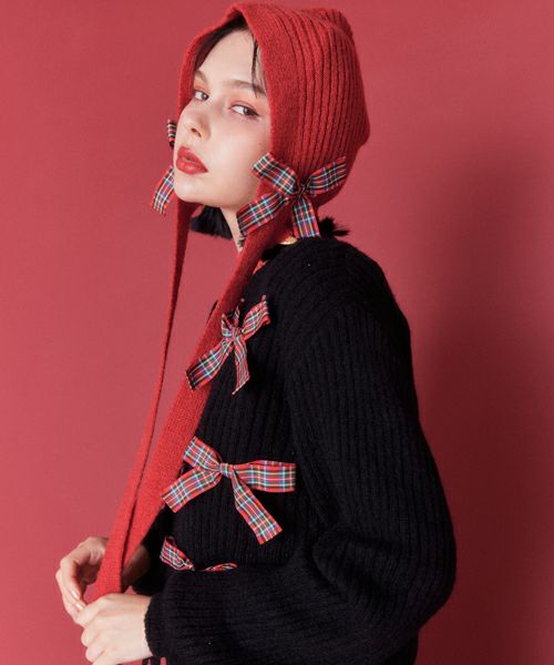 FANCY RIBBON HOOD BEANIE